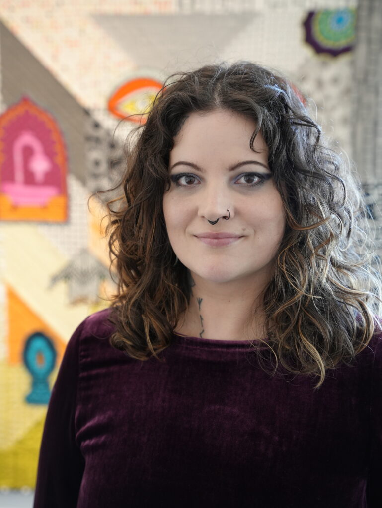 Katherine is a native Floridian who traded white sandy beaches for Maine’s snow covered tree-tops in 2013. A recent MPS graduate from Maryland Institute College of Design, Katherine is a painter, printmaker, graphic designer, and published philosopher. Her work focuses on embodiment and existentialist philosophy, esotericism, and humanity’s innate drive to create meaning. She loves listening, asking deep questions, and connecting to others through art and conversation. When not in her home studio, you can typically find Katherine zooming about downtown Belfast on her bicycle, “Gary,” on her porch enjoying a book, or behind the scenes at Waterfall Arts.