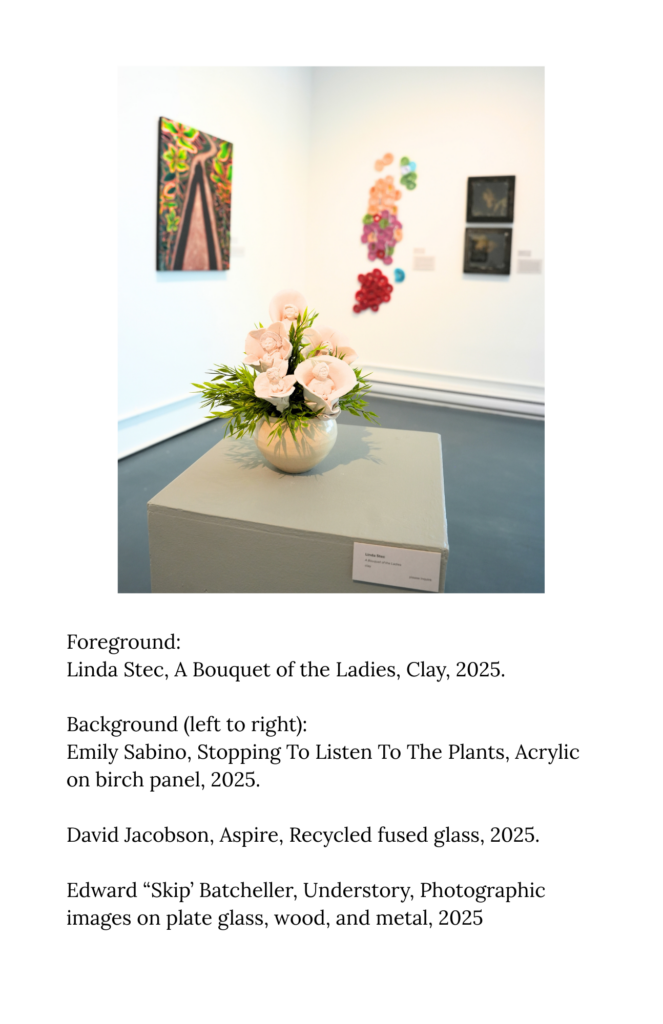 The artwork collected within Homegrown represents that collective momentum. It offers paintings made in the stolen hours before dawn, glass blown with help from three pairs of hands, stitched works that traveled from kitchen tables to gallery walls, and clay vessels that bear both the fingerprints of their makers and the story of the studio that fired them. This exhibition is not about a single style, discipline, or outcome. It is about the community that makes creativity possible, and the roots that deepen every time someone new joins us.